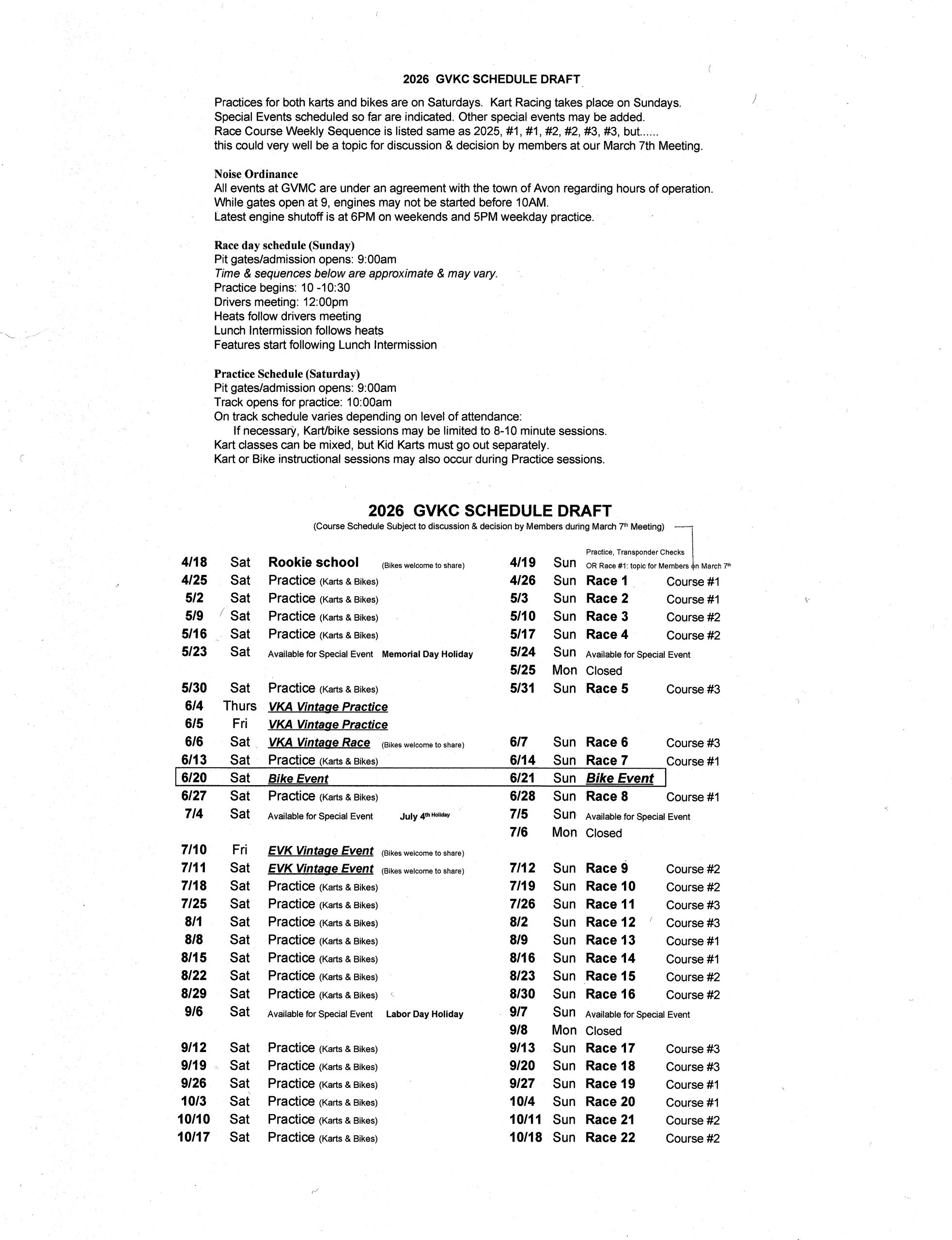 2026 Race Schedule Draft