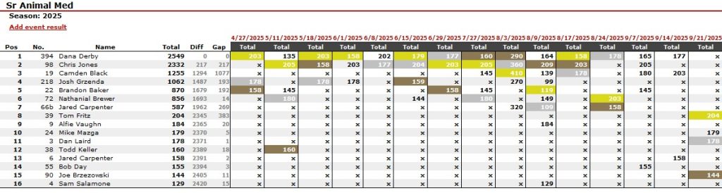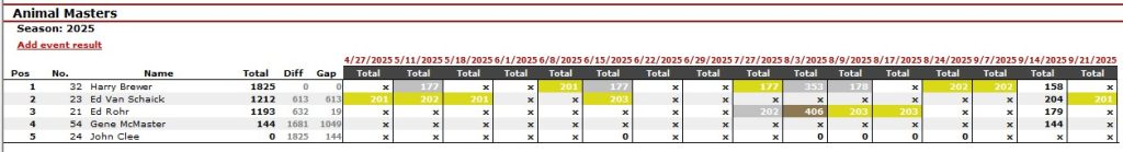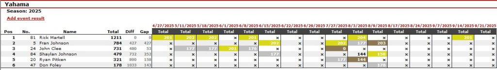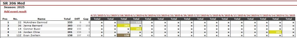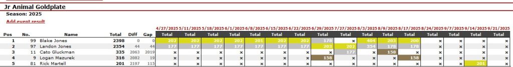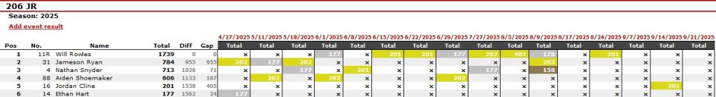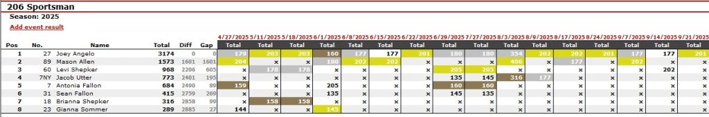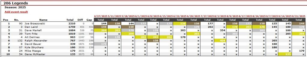 Please note that end of season points include only the best of 12 races. This will be done at the end of the year and is not represented below